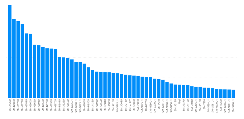 Here is part of a chart that shows all the devices that have used Dalvik on the Sport Social Podcast Network. All the “SM” device codes are different Samsung phone models, which accounts for the bulk of the Dalvik downloads, but you can see a small number attributed to other players, like a Google Pixel phone.
